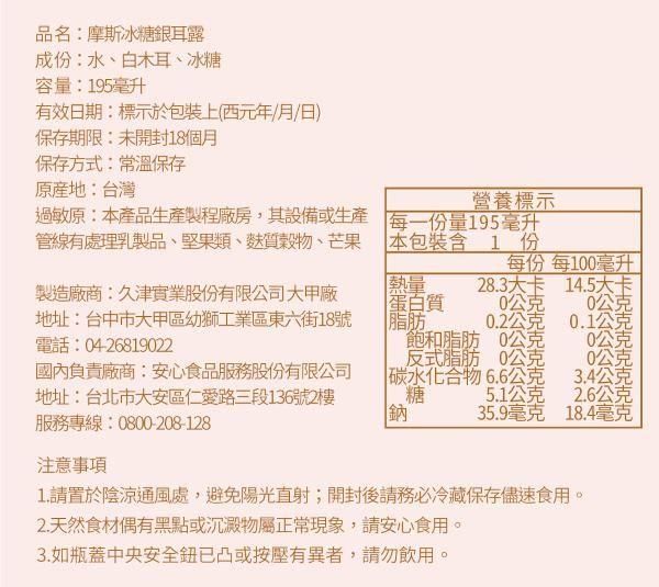 台湾モスバーガーより、白キクラゲドリンク(Rock Suger Tremella Drink) ギフトセット。台湾産の新鮮な白キクラゲを使用、農薬と重金属の検出検査もしっかり検査済み。