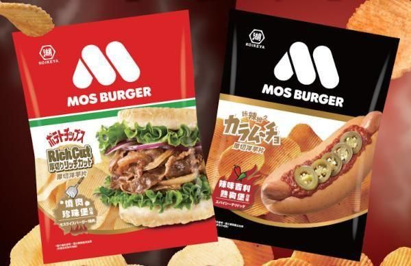 台湾モスバーガーより、ポテトチップス 焼肉モスライスバーガー味、スパイシーチリドッグ味を各3袋ずつ。台湾限定。