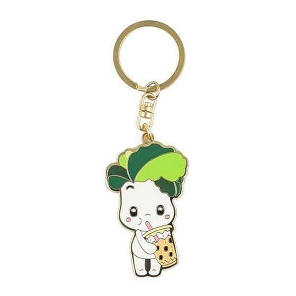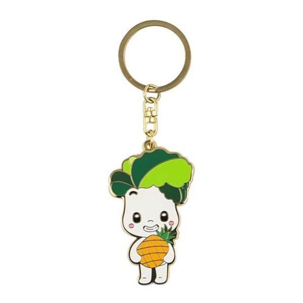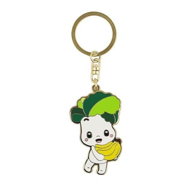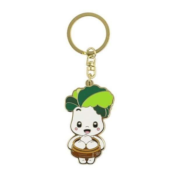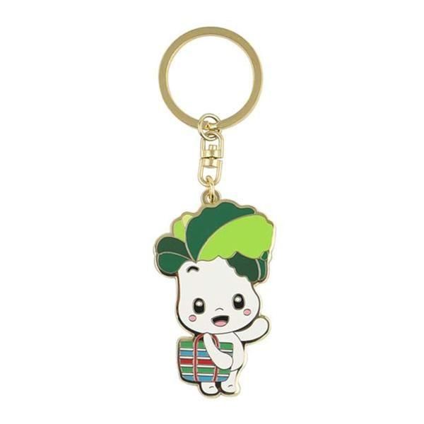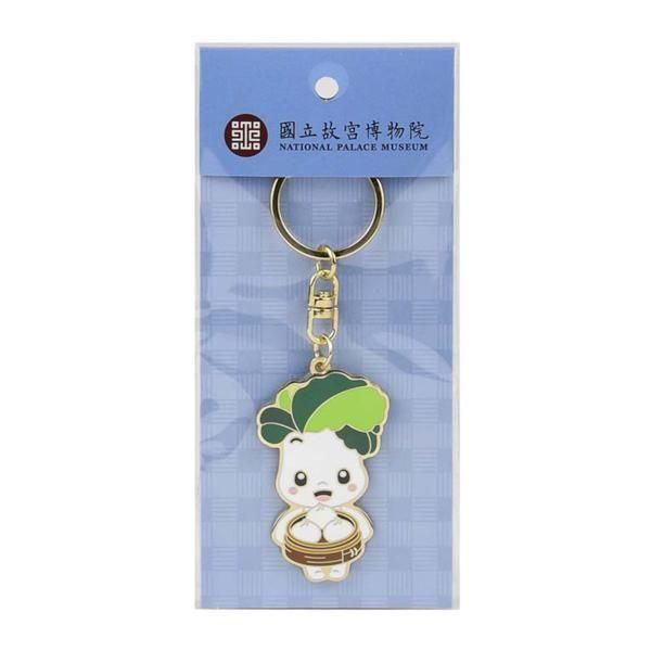 台湾故宮博物館オフィシャルグッズ。国宝・翠玉白菜をモチーフに擬人化したマスコットのキーホルダー。小翠ちゃんが台湾らしい逸品をもっている。